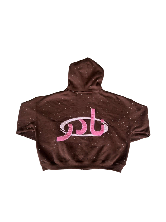 Brown Rhinestone Zip up hoodie (Pre-order)
